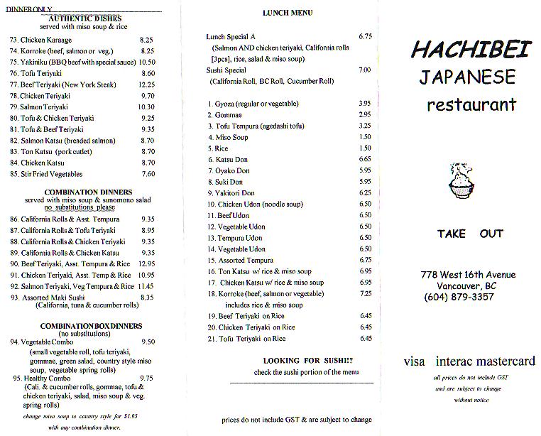 Hachibe Take-Out Menu