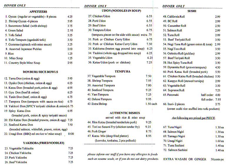 Disclaimer: Neo Eon Technology, Neoeontech.com, OKBON.ca, the Webmaster or the page owner, does not associate/affiliate/pay by the restaurant(s) or their employee(s) to put the restaurant menu(s) online. The purpose of these menu(s) is for personal use only and all site surfers can use these online menu(s) at their own discretions. If there is any discrepancy between the current menu(s) from the restaurant(s) and the menu(s) on this site, please disregard the latter. Neo Eon Technology, Neoeontech.com, the Webmaster or the page owner is not, was not and will not be responsible for the restaurant(s)' price, quality or sanitary standard.